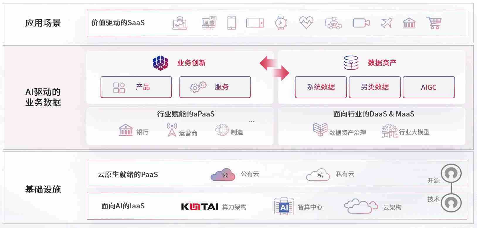 数字时代,,围绕企业数字化转型的关键要素,,z6mg人生就是博数码开创性的提出数云融合战略和技术体系框架,,,着力在云原生、、、、数字原生、、、AI原生和信创产业上架构产品和服务能力,,,,为处在不同数字化转型阶段的快消零售、、、汽车、、金融、、医疗、、、政企、、教育、、、运营商等行业客户提供泛在的敏捷IT能力和融合的数据驱动能力,,,构建跨界融合创新的数字业务场景和新业务模式,,,助力企业级客户建立面向未来的核心能力和竞争优势,,,,全面推动社会的数字化、、智能化转型升级。。。。