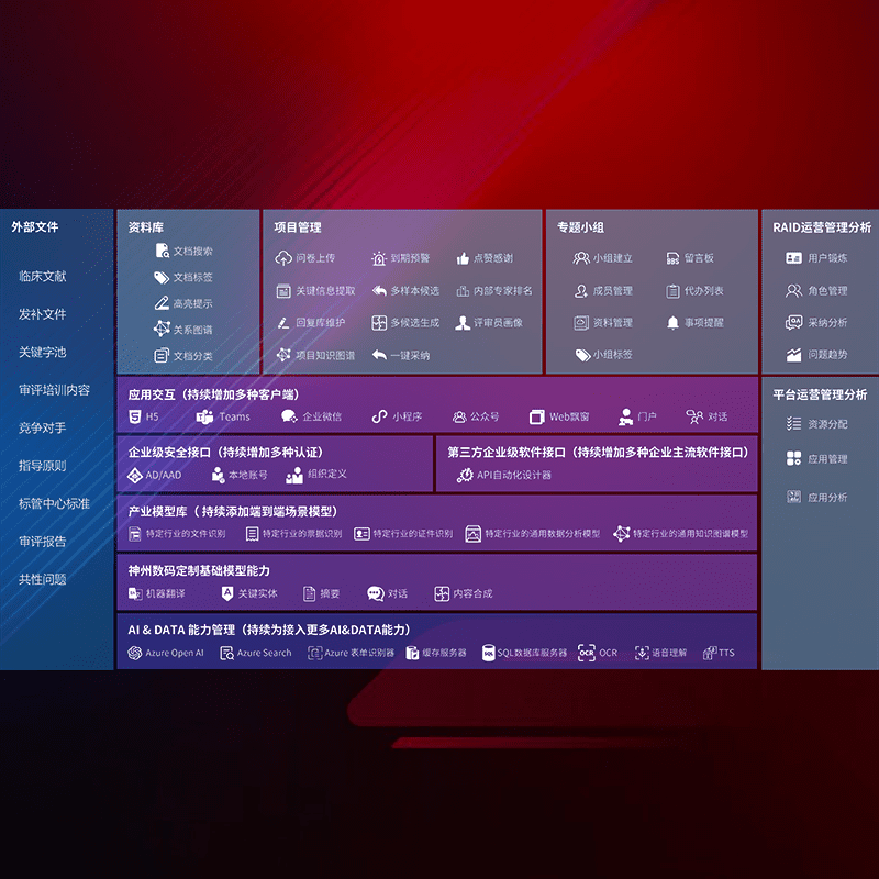 医疗器械产品上市前,,,要熟悉严格与繁复评审标准,,,,整理分析监管机构指导文件中的海量信息。。。企业急需一个智能化解决方案,,,,提升知识管理效率,,,,提高评审通过率,,,以提升其市场竞争力。。。